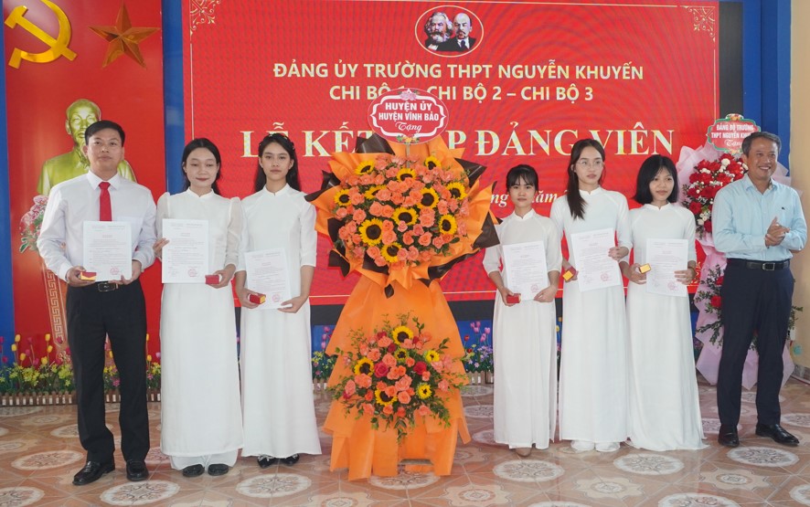 Trong những năm qua, Đảng bộ trường THPT Nguyễn Khuyến luôn coi trọng công tác xây dựng tổ chức cơ sở đảng, trong đó phát triển đảng viên mới là một trong những nhiệm vụ trọng tâm. Nhân kỷ niệm 135 năm ngày sinh nhật Bác Hồ muôn vàn kính yêu, Thường trực Huyện ủy ra Quyết định chuẩn y kết nạp đảng viên cho 6 quần chúng trong các Chi bộ 1,2,3 trực thuộc Đảng bộ trường THPT Nguyễn Khuyến. Trong đó cóa 01 quần chúng là giáo viên và 05 quần chúng là học sinh của nhà trường. Hiện nay tổng số đảng viên trong toàn Đảng bộ là 59 đảng viên.