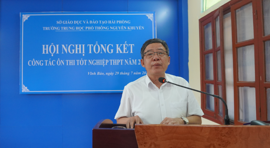 Chính vì vậy, ngày 29 tháng 7 năm 2023 Ban giám hiệu nhà trường đã tổ chức Hội nghị tổng kết công tác ôn thi tốt nghiệp năm 2023, tại Hội nghị thầy Phạm Huy Hùng Bí thư Đảng ủy, Hiệu trưởng nhà trường đã nêu những thuận lợi, khó khăn và ghi nhận sự đóng góp vô cùng to lớn của đội ngũ cán bộ, giáo viên, nhân viên đã thống nhất đồng lòng vượt lên khó khăn để hoàn thành nhiệm vụ để đưa con thuyền cập bến với kết quả tuyệt vời và mỹ mãn đó là kết quả tốt nghiệp trung học phổ thông năm học này đạt 100%. Duy trì thành tích bất bại trong nhiệm vụ số 1 là tốt nghiệp trung học phổ thông. Cũng tại Hội nghị này, Hiệu trưởng trân trọng, tin tưởng và ghi nhận cán bộ, giáo viên trên tất cả các lĩnh vực đã đóng góp vào thành công chung, dẫu cho có thể có những bộ môn, giáo viên kết quả còn khiêm tốn song cũng là dịp để đánh giá, xem xét, điều chỉnh nội dung, chương trình kế hoạch, phương pháp ôn thi để có những kết quả tốt hơn trong mua thi sau.
