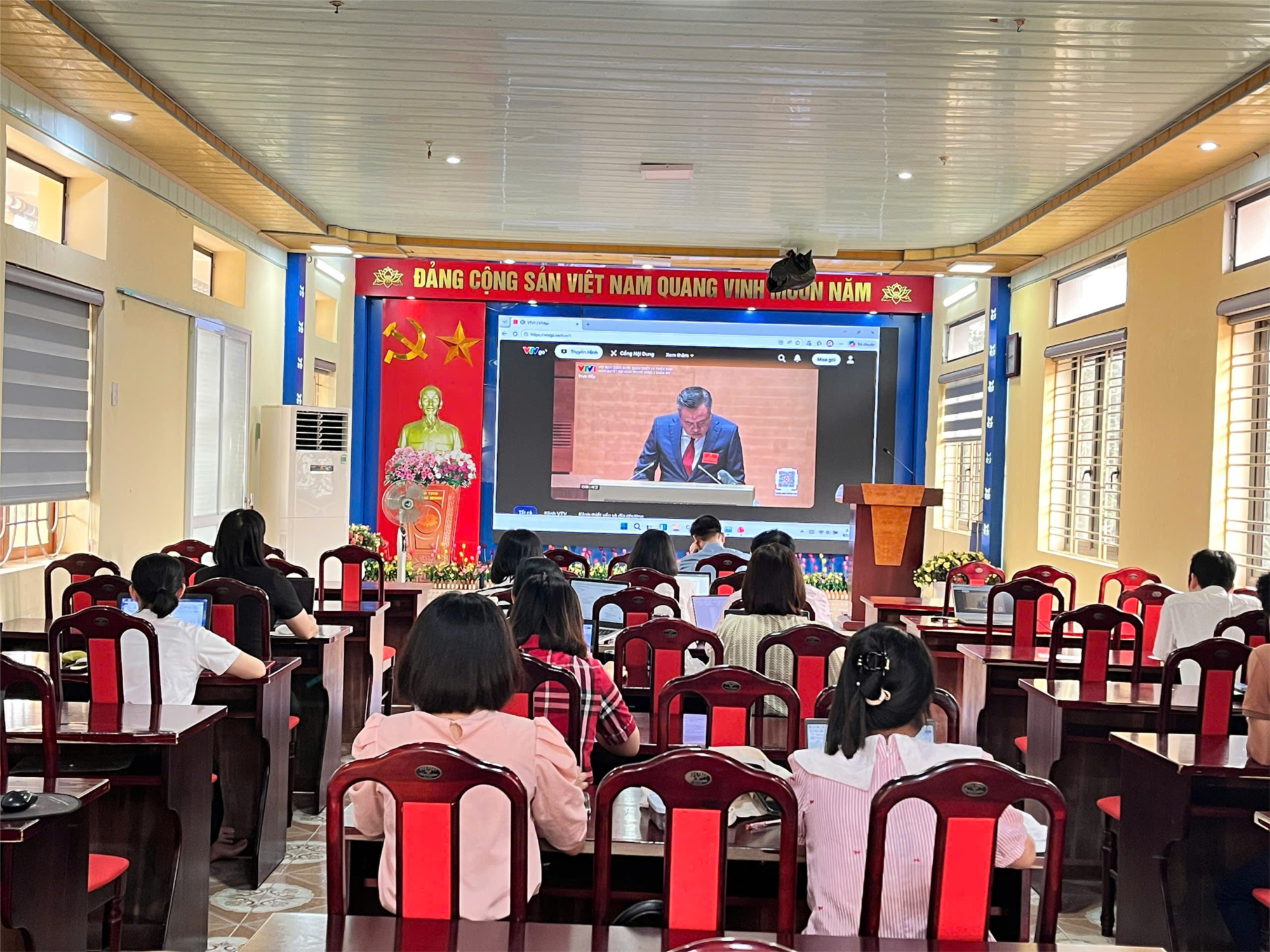 Thực hiện Kế hoạch số 36-KH/ĐU ngày 10 tháng 04 năm 2026 của Đảng ủy xã Vĩnh Bảo về việc tổ chức Hội nghị nghiên cứu, học tập, quán triệt và triển khai thực hiện Nghị quyết Hội nghị lần thứ hai Ban chấp hành Trung ương Đảng khóa XIV tại Đảng bộ xã Vĩnh Bảo. Đảng ủy trường THPT Nguyễn Khuyến đã triệu tập cán bộ, đảng viên tham gia điểm cầu trực tuyến, nghiên cứu, học tập, quán triệt và triển khai thực hiện Nghị quyết Hội nghị lần thứ hai Ban chấp hành Trung ương Đảng khóa XIV.