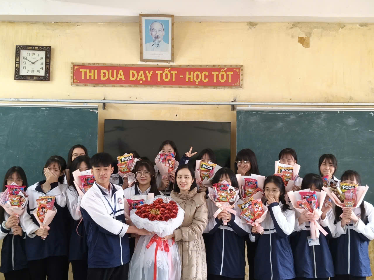 Hòa chung không khí tưng bừng của cả nước kỷ niệm 115 năm Ngày Quốc tế Phụ nữ (8/3/1910 - 8/3/2025), tập thể lớp 11B2 đã tổ chức thành công buổi lễ chào mừng ngày 8/3 dành riêng cho các bạn học sinh nữ trong lớp. Sự kiện diễn ra trong không khí vui tươi, ấm áp và tràn ngập tiếng cười, để lại nhiều kỷ niệm đáng nhớ. Buổi lễ có sự tham gia của cô Đào Thị Nhung, giáo viên chủ nhiệm, đại diện Ban cán sự lớp cùng toàn thể các bạn học sinh lớp 11B2. Mở đầu chương trình, cô Đào Thị Nhung, giáo viên chủ nhiệm đã có những lời phát biểu ý nghĩa, tôn vinh vai trò và những đóng góp to lớn của phụ nữ trong xã hội nói chung và các bạn nữ sinh trong lớp nói riêng. Những lời chúc tốt đẹp, chân thành đã được gửi đến các bạn nữ, thể hiện sự quan tâm, yêu mến và trân trọng của cô và các bạn nam.
