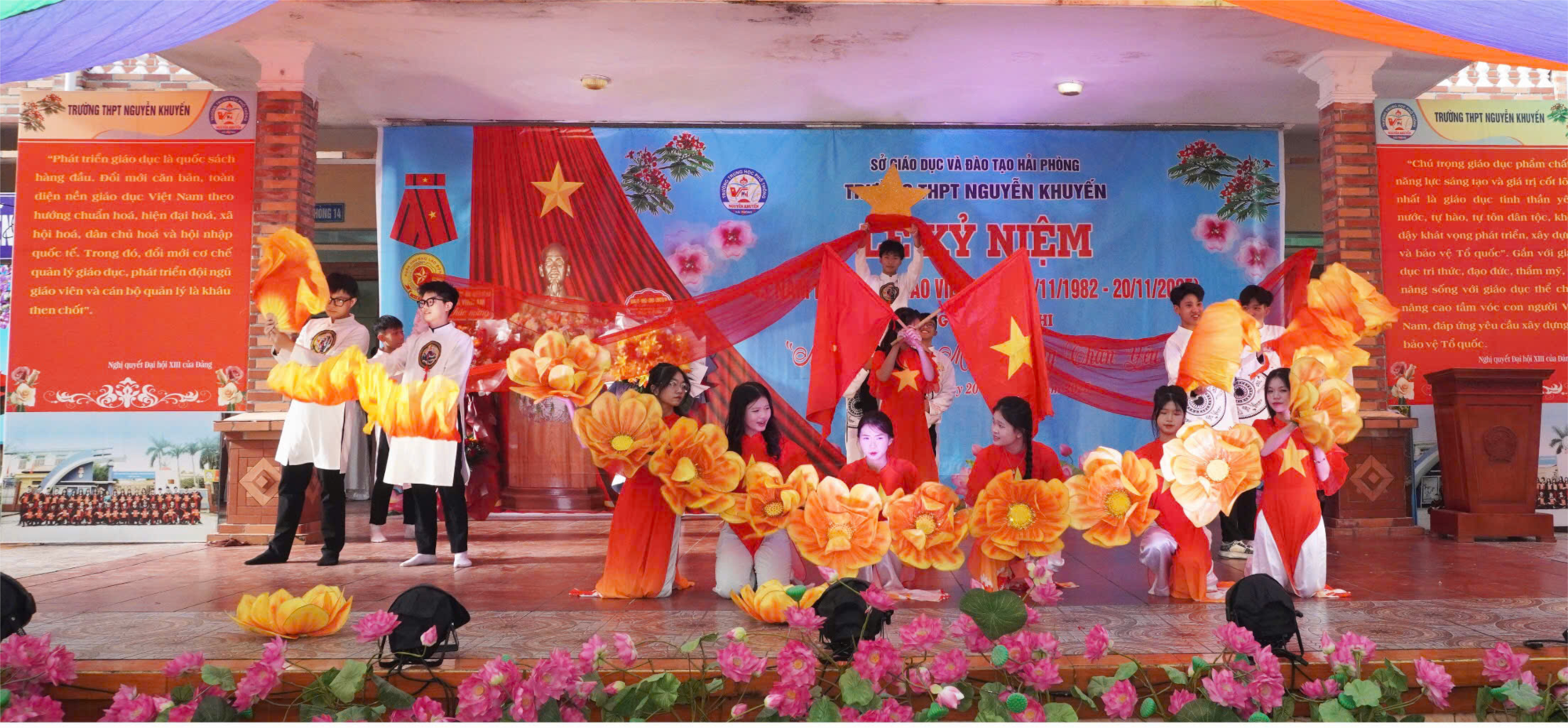Thực hiện Kế hoạch số 05-KH/ĐTN ngày 30 tháng 10 năm 2025 của BCH Đoàn trường THPT Nguyễn Khuyến về việc chỉ đạo hoạt động công tác đoàn và phong trào thanh niên tháng 11 năm 2025 và Kế hoạch số số 06/KHLT-THPTNK-ĐTN ngày 01 tháng 11 năm 2025 về việc tổ chức Hội thi “Múa hát về mái trường thân yêu” chào mừng 43 năm ngày nhà giáo Việt Nam(20/11/1982 - 20/11/2025). Được sự nhất trí của Đảng uỷ, Ban giám hiệu nhà trường, sáng thứ 5 ngày 20/11/2025, Đoàn trường tổ chức Chung kết Hội thi “Múa hát về mái trường thân yêu”. Hội thi diễn ra trong không khí vui tươi, hào hứng, thu hút sự quan tâm của hơn 1300 đoàn viên thanh niên học sinh của 30 chi đoàn theo dõi và cổ vũ cho các tiết mục tham gia Chung kết Hội thi. Với tinh thần làm việc khách quan, công tâm, Ban tổ chức đã lựa chọn và trao giải cho 16 tiết mục của các chi đoàn, trong đó có 01 giải Xuất sắc, 02 giải Nhất, 03 giải Nhì, 04 giải Ba và 06 giải Khuyến khích.