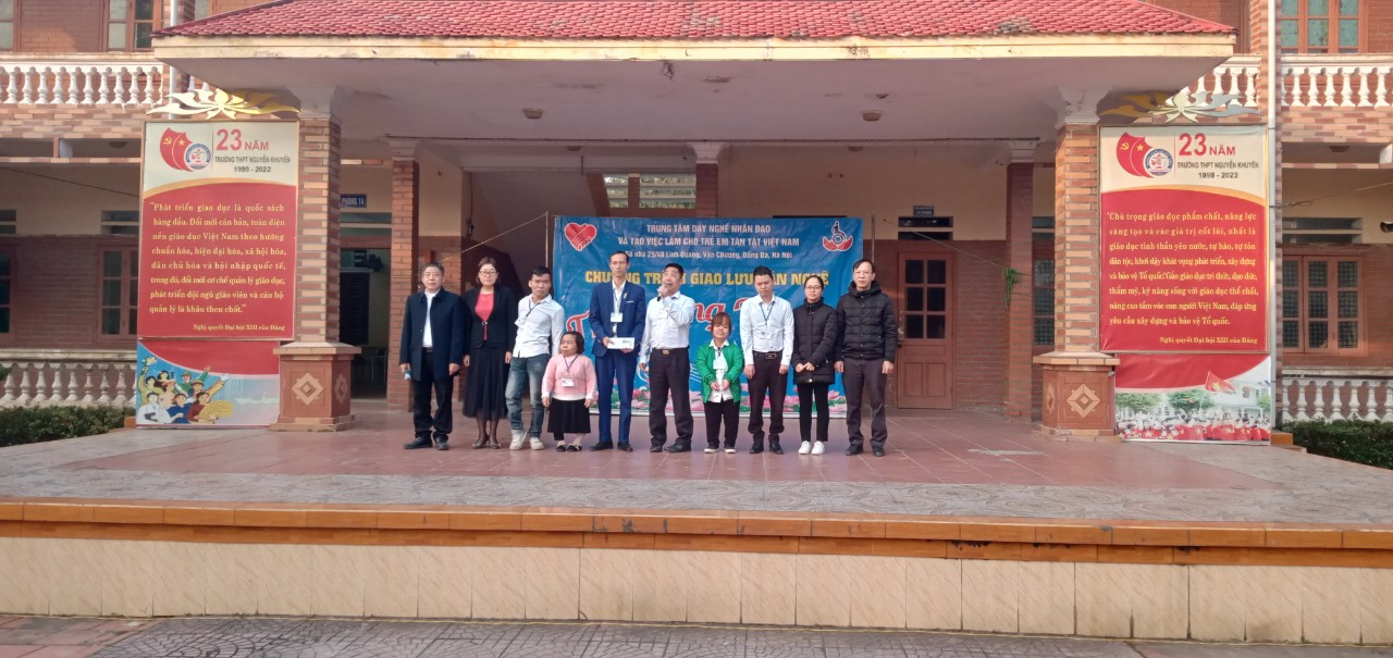 Sáng ngày 27/02/2023 tại trường THPT Nguyễn Khuyến diễn ra Chương trình giao lưu nghệ thuật “Thắp sáng ước mơ” giữa trường THPT Nguyễn Khuyến và Trung tâm dạy nghề nhân đạo và tạo việc làm cho trẻ em khuyết tật Việt Nam (Địa chỉ 25/48 Linh Quang, Văn Chương, Đống Đa, Hà Nội)