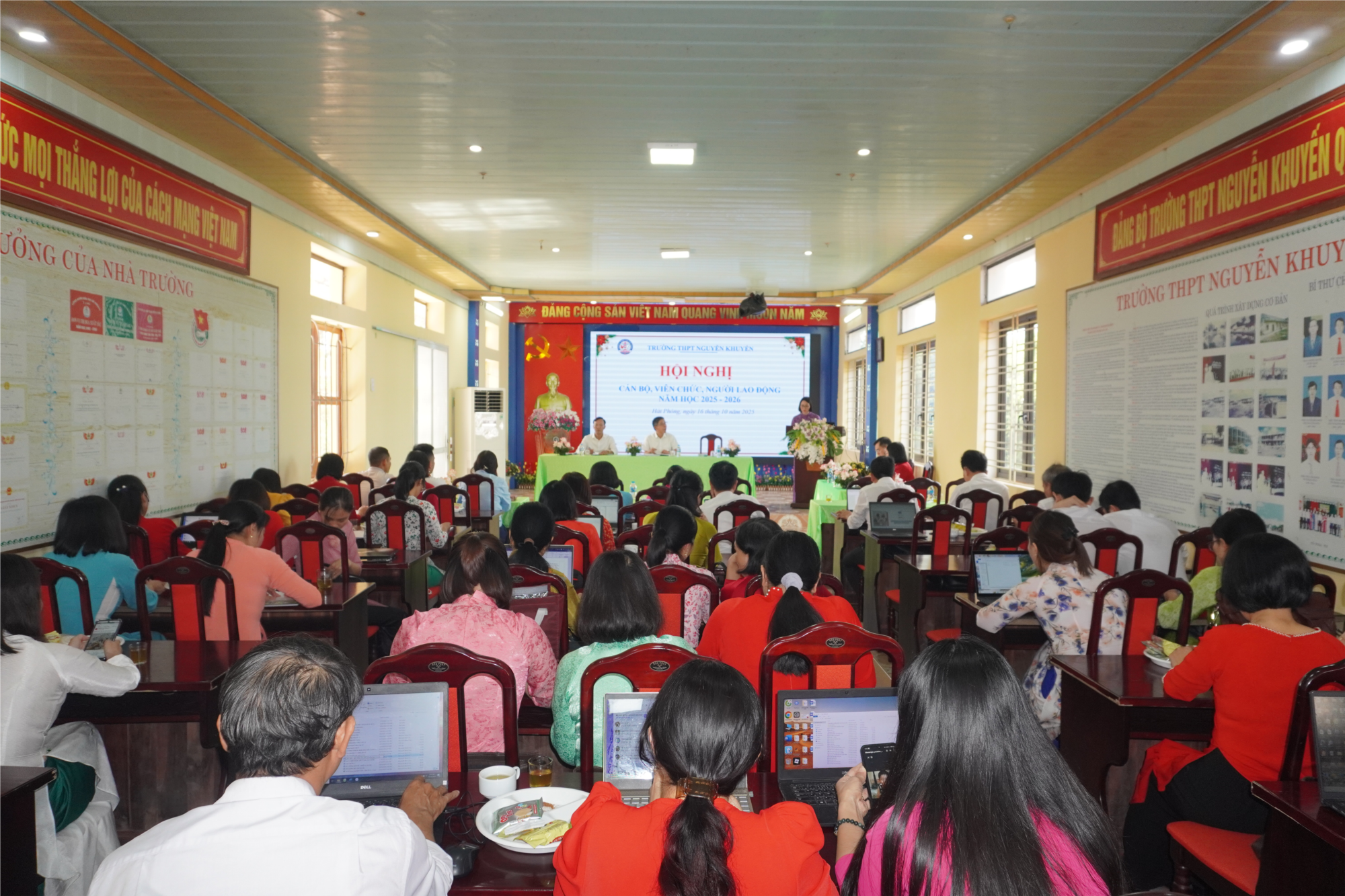 Thực hiện Kế hoạch số 77/KH-THPTNK ngày 29 tháng 09 năm 2025 về việc tổ chức Hội nghị cán bộ, viên chức, người lao động năm học 2025-2026 của Ban giám hiệu trường THPT Nguyễn Khuyến. Chiều ngày 16 tháng 10 năm 2025, Hội nghị cán bộ, viên chức, người lao động năm học 2025-2026 được tổ chức tại trường THPT Nguyễn Khuyến. Hội nghị nhằm đánh giá lại kết quả thực hiện nhiệm vụ năm học 2024-2025 và kế hoạch phương hướng nhiệm vụ, giải pháp, biện pháp và các chỉ tiêu của năm học 2025-2026.