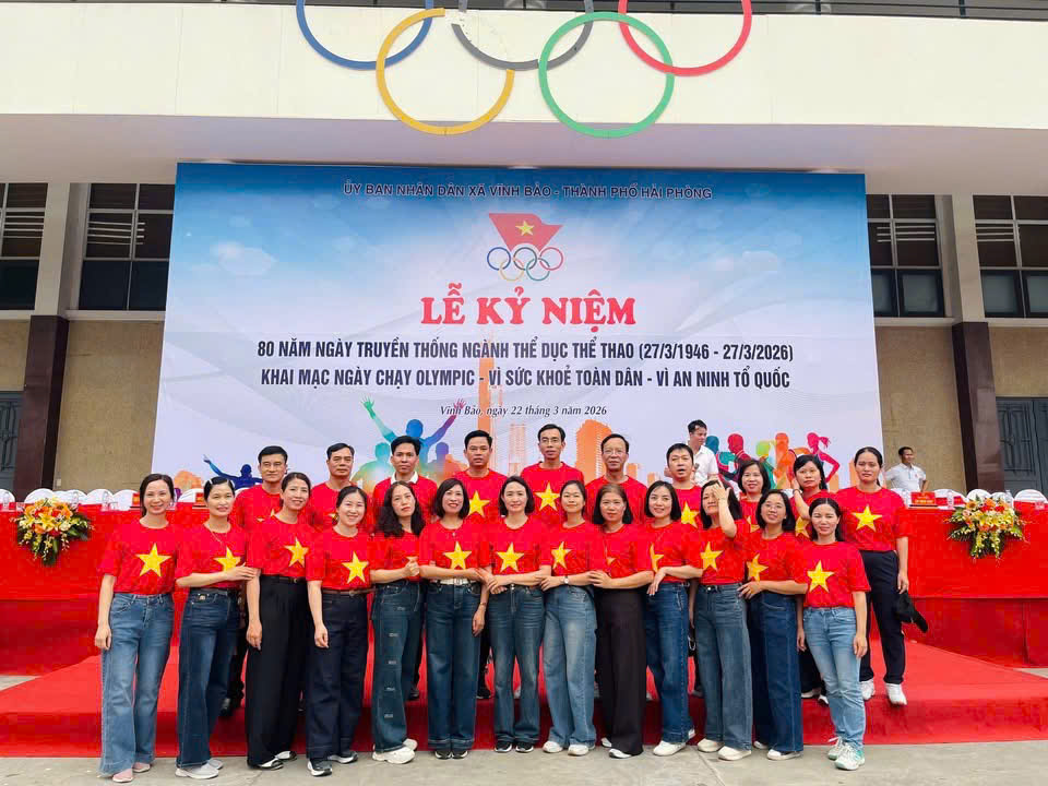 Thiết thực chào mừng kỷ niệm 80 năm Ngày truyền thống nghành Thể dục, Thể thao Việt Nam (27/3/1946- 27/3/2026), sáng ngày 22/3/2026, Uỷ ban nhân dân xã Vĩnh Bảo tổ chức Ngày chạy Olympic vì sức khoẻ toàn dân- Vì an ninh Tổ quốc năm 2026 trong không khí sôi nổi, hào hứng và trang trọng. Hưởng ứng sự kiện đầy ý nghĩa này, Trường THPT Nguyễn Khuyến đã thành lập đội tham gia Ngày chạy- những bước chạy đều, đẹp, đầy khí thế của cán bộ, giáo viên nhà trường đã để lại ấn tượng tốt đẹp trong lòng nhân dân và Ban tổ chức.