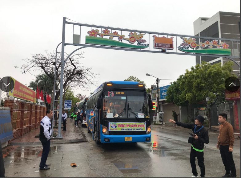 Đúng 6h30 phút sáng ngày 05/02/2023, học sinh khối 12 tập trung tại trường để lên xe, di chuyển vào địa điểm học tập trải nghiệm – khu nhà thờ của nhà thơ Nguyễn Khuyến, tại thôn Vị Hạ, làng Yên Đổ, xã Trung Lương, huyện Bình Lục, tỉnh Hà Nam. Đúng 7h15 phút toàn bộ đoàn gồm 8 xe khách của công ty du lịch Hòa Bình khởi hành.