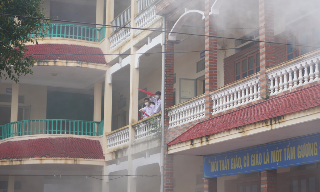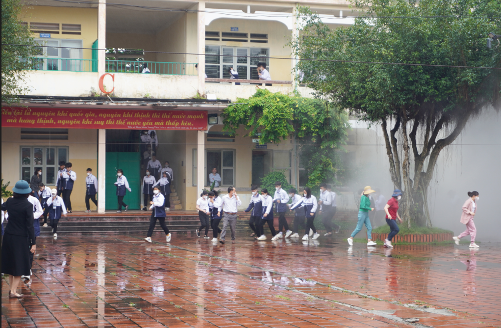 Dưới sự chỉ đạo của Đảng ủy, ban giám hiệu nhà trường, Đội cảnh sát PCCC của huyện Vĩnh Bảo thực hiện tổ chức diễn tập theo đúng kịch bản đã đề ra.